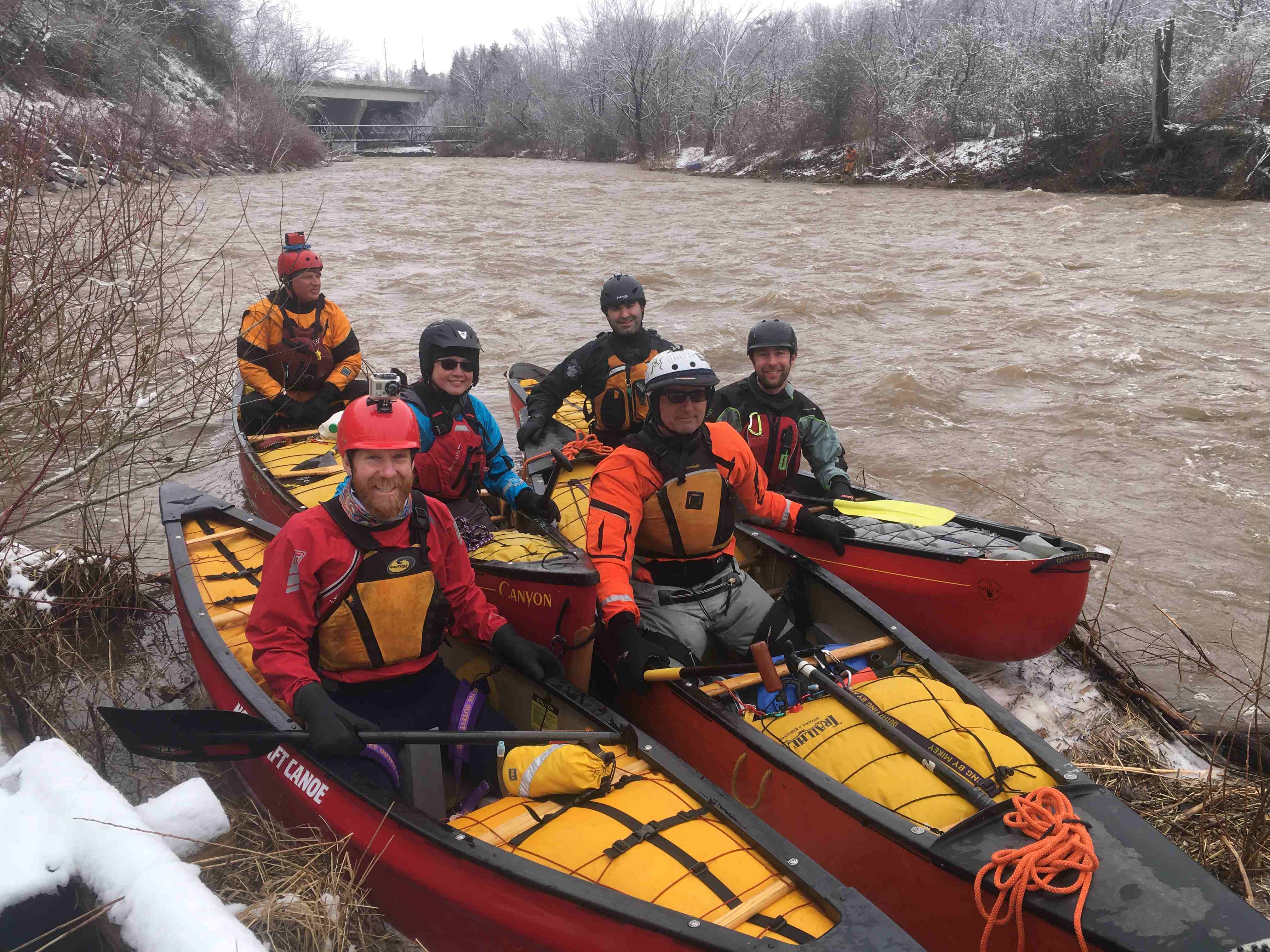 After a couple of years of not being available due to massive log jams, my favorite river, the MAD River (near Creemore Ont) , cleaned itself up in the rains of early April 2023, and a group of WCA members ran the fourteen kilometers of fast moving whitewater fun from Creemore to Glencairn (the river at that time of year rarely slows down)